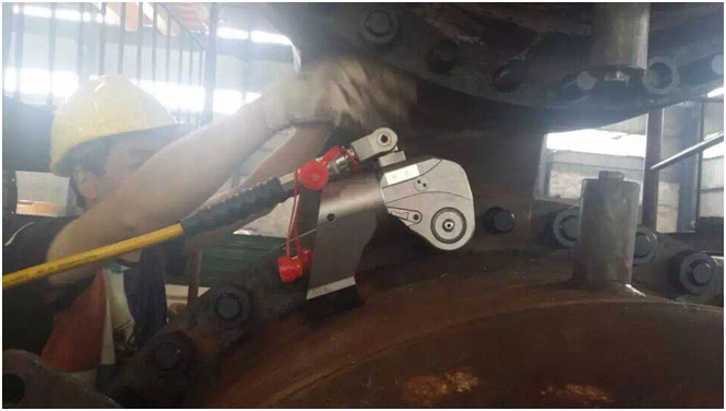 聚頂機(jī)械針對(duì)化工廠裝備公司的情況,派遣了有現(xiàn)場(chǎng)經(jīng)驗(yàn)的技術(shù)員前往查看,現(xiàn)場(chǎng)工況相對(duì)不是很復(fù)雜,標(biāo)配的液壓扳手就能解決,但也存在較為特殊的情況,如法蘭連接處不是平面,夾角不是垂直或者工作空間狹小等情況,聚頂機(jī)械公司從用戶的角度出發(fā),給出的解決方案不光滿足工作要求,還要為客戶節(jié)約成本,所以針對(duì)化工廠裝備公司常規(guī)以及特殊的現(xiàn)場(chǎng)情況聚頂機(jī)械公司采用一套液壓扳手就能解決全部問題的方案,得到客戶的高度認(rèn)可。由于現(xiàn)場(chǎng)工人不會(huì)使用液壓扳手,聚頂機(jī)械技術(shù)人員就手把手教操作人員,直到都能熟練操作為止,同時(shí)在現(xiàn)場(chǎng)工人的要求下,用液壓扳手裝配一套壓力容器,最后還要加水打壓檢測(cè)是否泄漏,一切都超出了工人們的預(yù)料,大家都說以后有了液壓扳手他們心里有底多了,以后就不再全部依賴“風(fēng)炮”了,技術(shù)主管人員也說使用液壓扳手后交付給客戶的產(chǎn)品,他們就放心了。