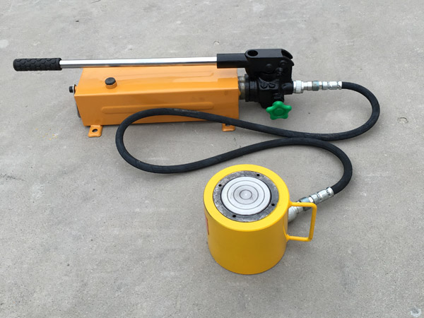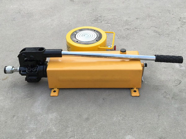 8、使用時先將手動泵的快速接頭與頂對接,然后選好位置,將油泵上的放油螺釘旋緊,即可工作。欲使活塞桿下降,將手動油泵手輪按逆時針方向微微旋松,油缸卸荷,活塞桿即逐漸下降。否則下降速度過快將產(chǎn)生危險(xiǎn)。