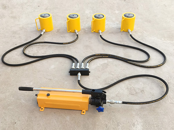 7、如需幾只千斤頂同時起重時,除應(yīng)正確安放千斤頂外,應(yīng)使用多頂分流閥,且每臺千斤頂?shù)呢?fù)荷應(yīng)均衡,注意保持起升速度同步。還要考慮因重量不勻地面可能下陷的情況,防止被舉重物產(chǎn)生傾斜而發(fā)生危險(xiǎn)。