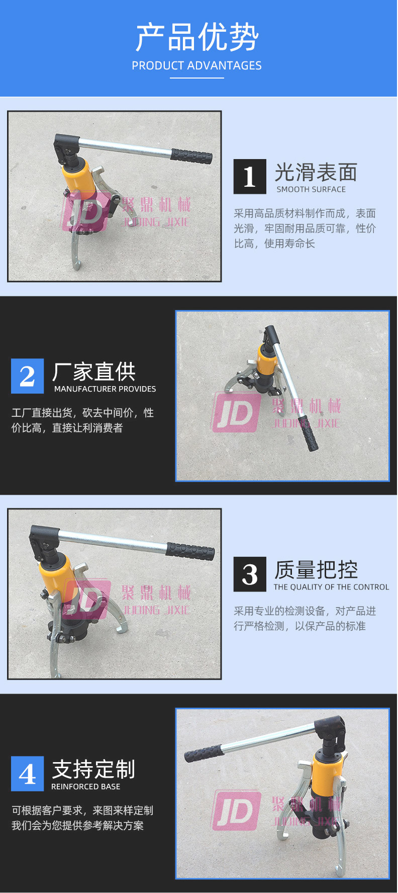 液壓拉馬是以液壓起動桿直接前進移動,故推動桿本身不作轉(zhuǎn)動。鉤爪座又可隨螺紋直接作前進后退之調(diào)距,操作時只要把手前后小幅度擺動,油壓起動桿前移,鉤爪相對應(yīng)后退,把被拉物體拉出。